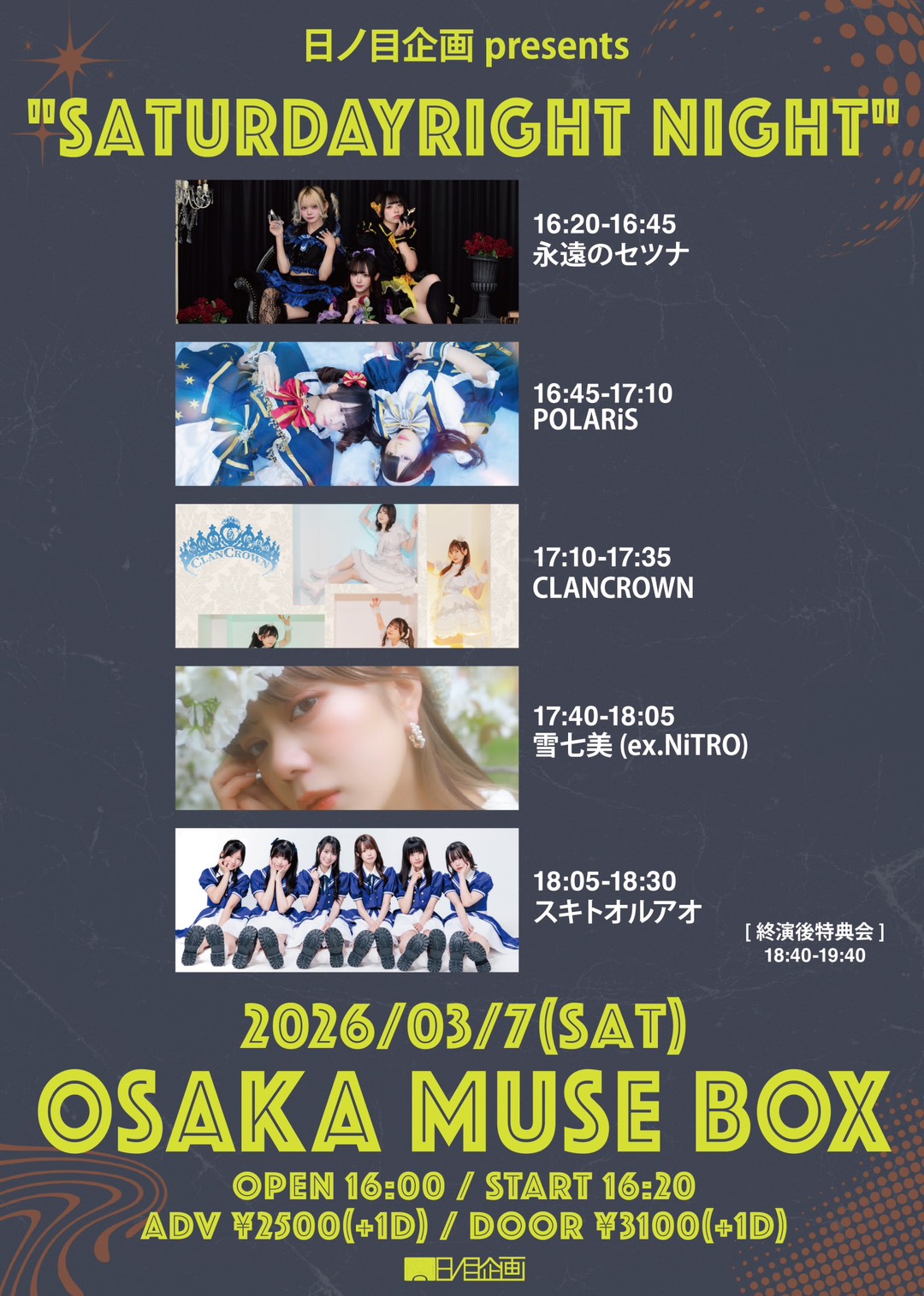 出演者: 永遠のセツナ / POLARiS / CLANCROWN / 雪七美(ex.NiTRO) / スキトオルアオ