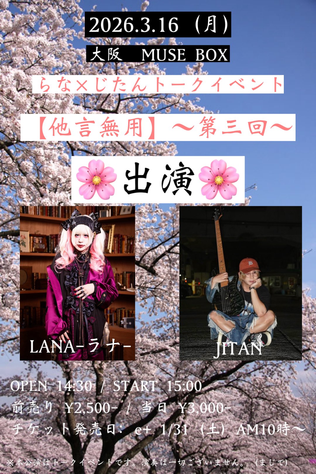 出演者: LANA-ラナ-(ミスイ) / JITAN / 春(umbrella) / 椿(ex. Rides In ReVellion) / 毒-doku-(ニーチェ) / 詩季