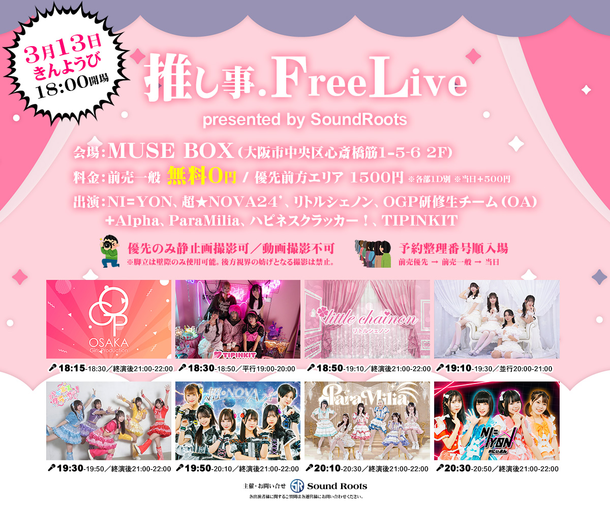 出演者: NI=YON / 超★NOVA24’ / リトルシェノン / OGP研修生チーム(OA) / +Alpha / ParaMilia / ハピネスクラッカー! / TIPINKIT